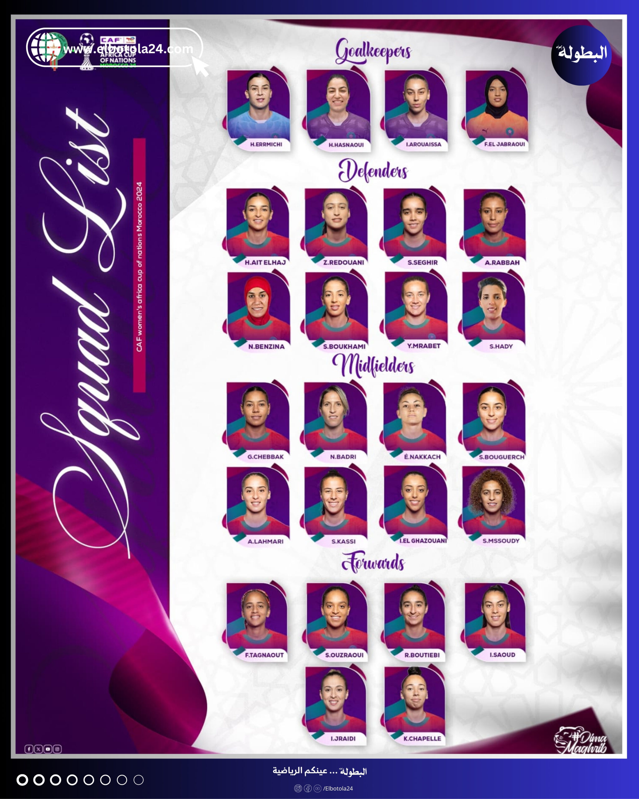 وتضم اللائحة التي تم استدعاؤها 26 لاعبة، وهن: