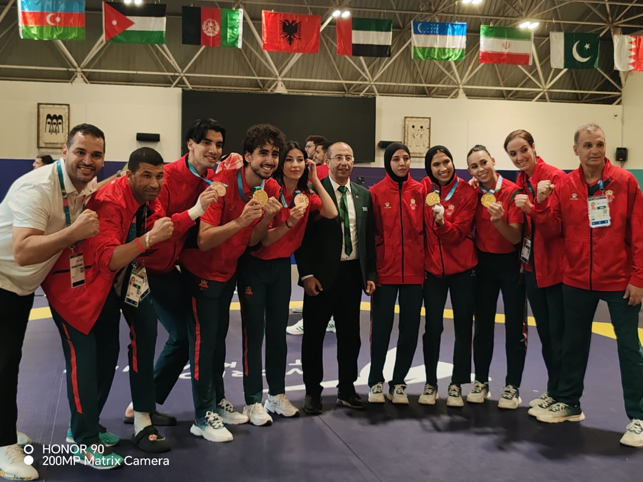 حقق المنتخب الوطني المغربي للتايكوندو إنجازا بارزا خلال مشاركته في منافسات ألعاب التضامن الإسلامي الرياض 2025 التي جرت ما بين 7 و21 نونبر بالعاصمة السعودية، حيث تمكن من إحراز خمس ميداليات من أصل ست مشاركين بواقع ثلاث ميداليات ذهبية ونحاسيتين، وهو ما مكنه من احتلال المركز الثاني في الترتيب العام خلف المنتخب الأوزبكي. وقد افتتحت البطلة أمينة الدحاوي مسار التألق بفوزها بذهبية وزن أقل من 57 كلغ بعد تفوقها على منافسات من غامبيا وأوزبكستان وتركيا، تلاها تألق البطل هيثم الزغوطي الذي أحرز ذهبية وزن أقل من 82 كلغ بعد سلسلة انتصارات على منافسين من باكستان والسعودية وأوزبكستان وإيران، فيما حصدت البطلة أميمة البوشتي الميدالية النحاسية لوزن أقل من 51 كلغ بعد فوزها في دور الربع على ممثلة كازاخستان وخسارتها في النصف أمام ممثلة تركيا ثم انتصارها في دور الترضية على بطلة باكستان، وفي اليوم الأخير واصلت العناصر الوطنية تألقها بحصول البطلة ندى لعرج على ذهبية وزن أقل من 63 كلغ إثر تفوقها على منافسات من أذربيجان وكازاخستان وأوزبكستان وتركيا، بينما حقق البطل سفيان العصبي ميدالية نحاسية في وزن أكثر من 82 كلغ بعد فوزه في الربع وخسارته في النصف قبل أن ينتصر في دور الترضية على ممثل أذربيجان. وشهدت البطولة مشاركة الحكمتين المغربيتين ماجدة الزهراني ونسرين بالقايد اللتين قدّمتا تحكيما متميزا وعكسن تمثيلا مشرفا للخبرة المغربية في التحكيم الدولي، في حين كان المنتخب الوطني مؤطراً من طرف المدربين فوزي الراشدي وحكيمة المصلاحي اللذين سهرا على تأطير المنتخب الوطني بالكامل وضمان أعلى مستويات الأداء الفني والتقني.